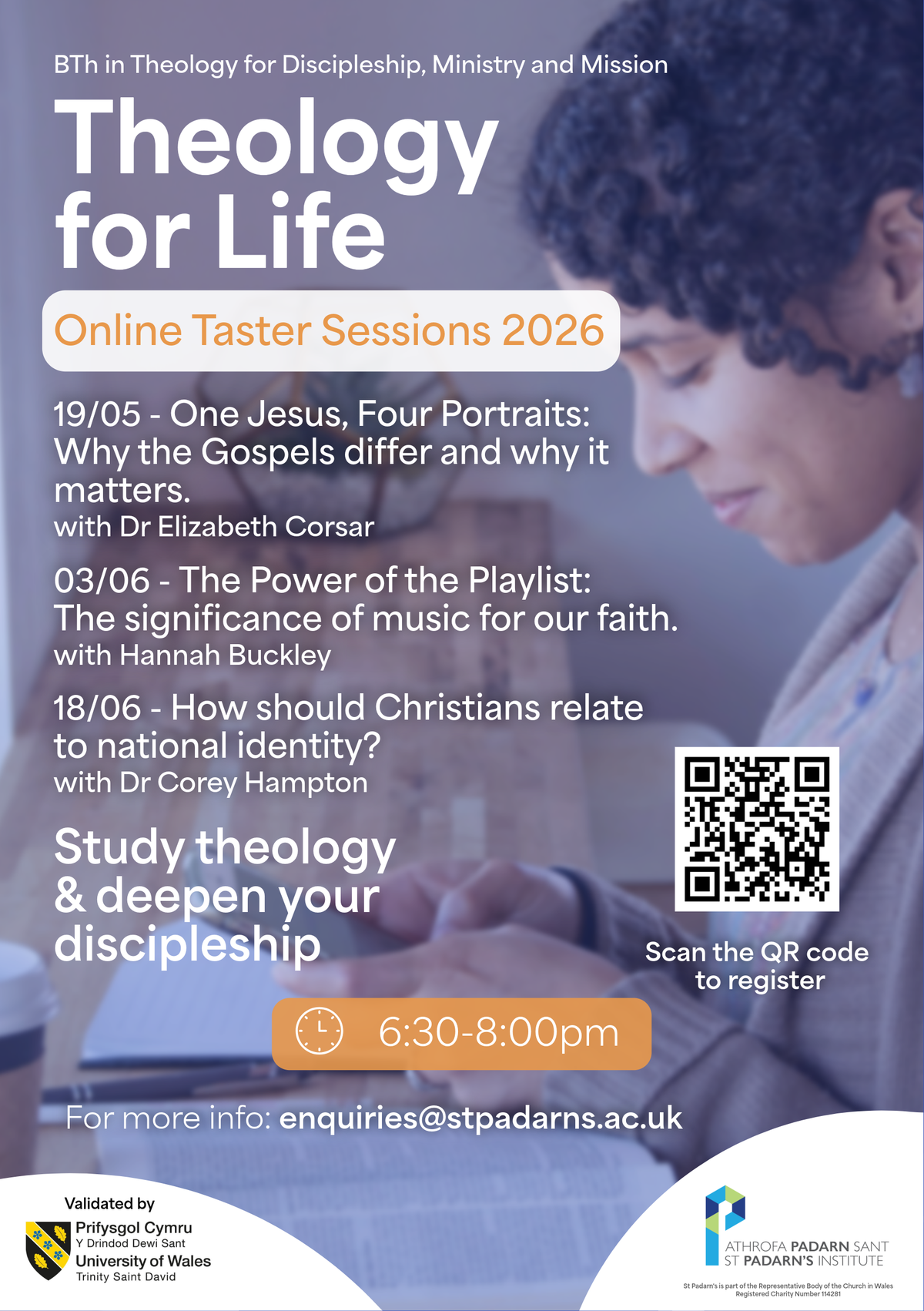 If so, Theology for Life is for you. Theology for Life (TFL) is an online part-time degree, diploma or certificate course which helps you connect your faith with everyday life. It is an accredited University course in Theology, delivered by St Padarn’s Institute and validated by the University of Wales, Trinity Saint David.